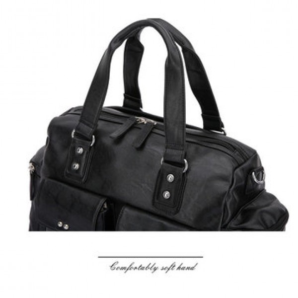 Men PU Leather Solid Vintage Large Capacity Handbag Outdoor Bag Crossbody Bag