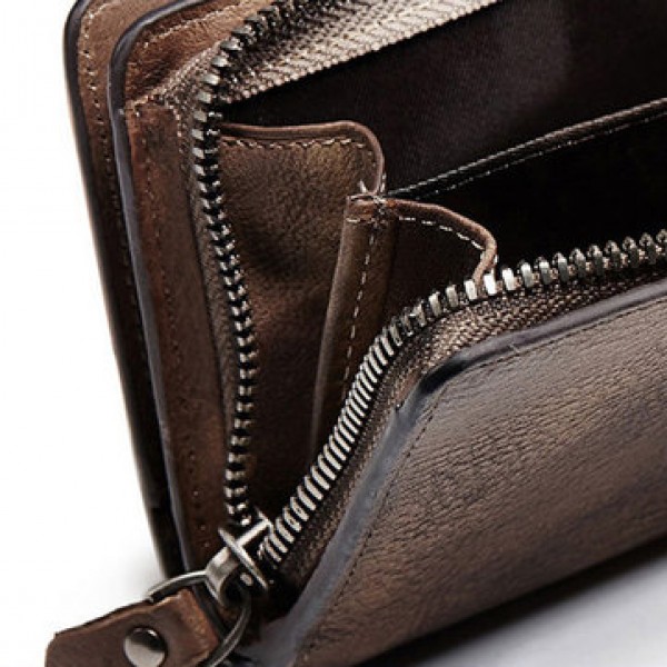 Vintage Genuine Leather Large Capacity Multi-slot Zipper Pocket Wallet For Men
